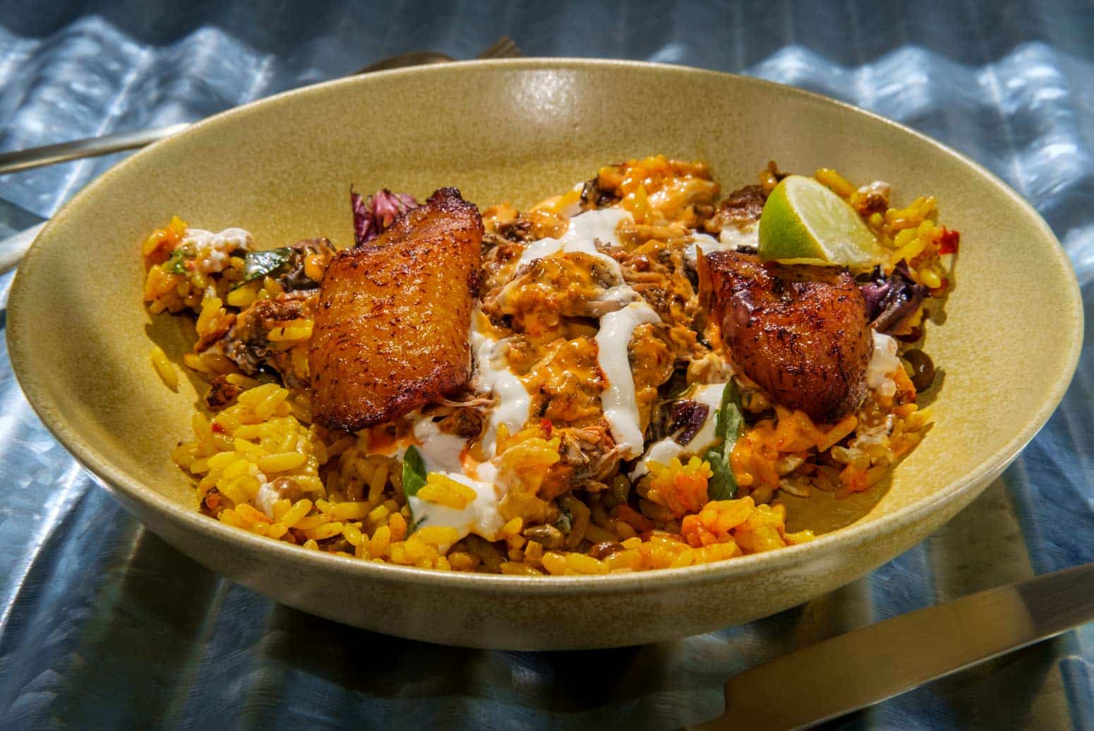 Discover culinary delight with our Jamaican Jerk package: Island Coconut Rice & Peas, Plantains, Coconut poached Veggies, Asian Salad, Assorted Cookies, and your choice of protein – chicken, shrimp, salmon, steak, or tofu. Catering perfection!”